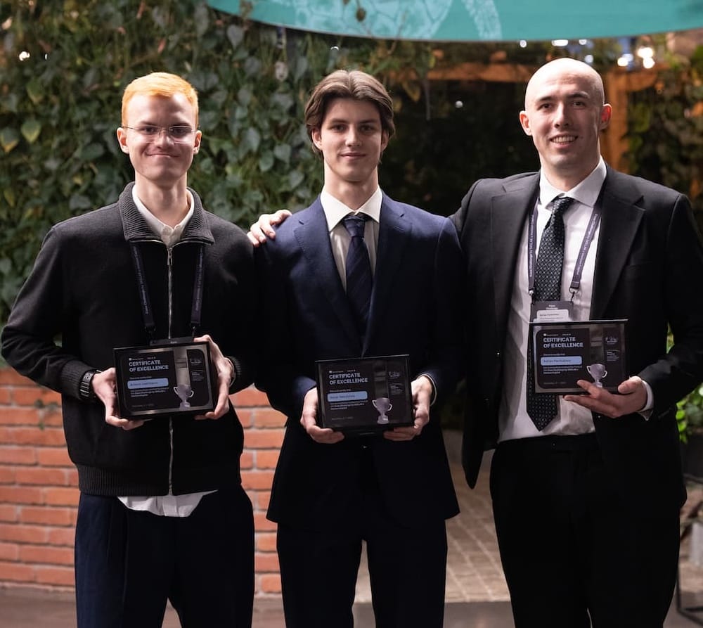 Найвищий бал — 39 із 40 можливих — отримала команда студентів Київського національного університету імені Тараса Шевченка (на фото зліва направо):