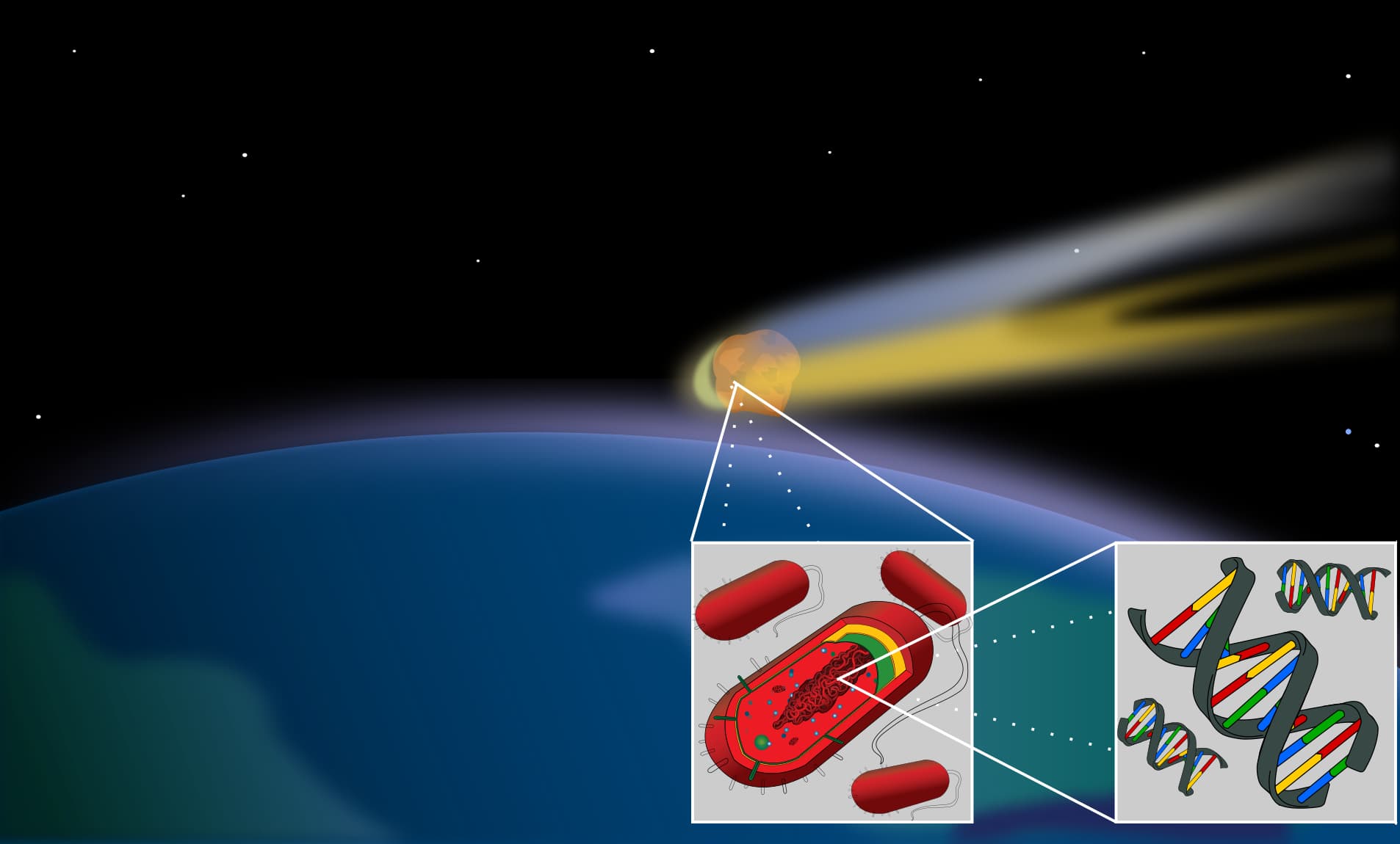 Панспермія передбачає, що мікроорганізми можуть переноситися між планетами разом із космічними уламками. Під час удару астероїда частина поверхні планети може бути викинута у космос. Якщо мікроорганізми перебувають у цих породах, вони можуть пережити подорож і згодом потрапити на іншу планету.